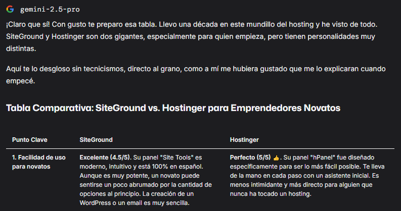 Pedile el Esqueleto (Outline): "Basado en el título 'SiteGround vs Hostinger: ¿Cuál elegir si es tu primera web?', creame un outline detallado para el post. Incluye una introducción que conecte con el miedo a elegir mal, secciones de comparación para cada punto clave (usabilidad, soporte, precio), una sección de 'Mi Veredicto Personal' y una conclusión con un llamado a la acción claro."
